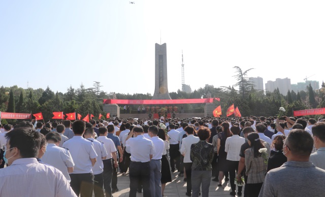 9月30日,淄川区向人民英雄敬献花篮仪式在区革命烈士陵园举行。田兵兵、周婷、李涌、白向坊、范伟等区大班子领导出席。 上午9点,与会人员高唱国歌,向人民英雄敬献花篮仪式开始。 在《献花曲》肃穆庄严的乐曲声中,区委书记田兵兵向革命烈士敬献花篮;与会人员向革命烈士纪念碑三鞠躬。 区委副书记、区长周婷主持仪式。她说,今年是中国共产党成立 100 周年。100 年来,无数革命先烈前赴后继、英勇献身,才换来了今天国家的繁荣富强和人民的幸福生活。值此国家烈士纪念日和新中国成立 72 周年之际 ,今天我们怀着无比崇敬的心情,在这里隆重举行淄川区向人民英雄敬献花篮仪式,缅怀先烈、致敬英雄,弘扬英烈精神、赓续红色血脉、凝聚奋进力量,动员全区上下进一步激扬爱国之情,立牢强国之志,砥砺报国之行,落实突破、担当实干,奋力推动老工业区转型跨越、走在前列,努力为实现中华民族伟大复兴的中国梦作出新的更大贡献。 青少年献唱了《我们是共产主义接班人》;与会人员向革命烈士敬献了鲜花,并瞻仰了革命烈士纪念碑。 (淄川融媒 记者 谭丹 李蕙含 李鸽) |