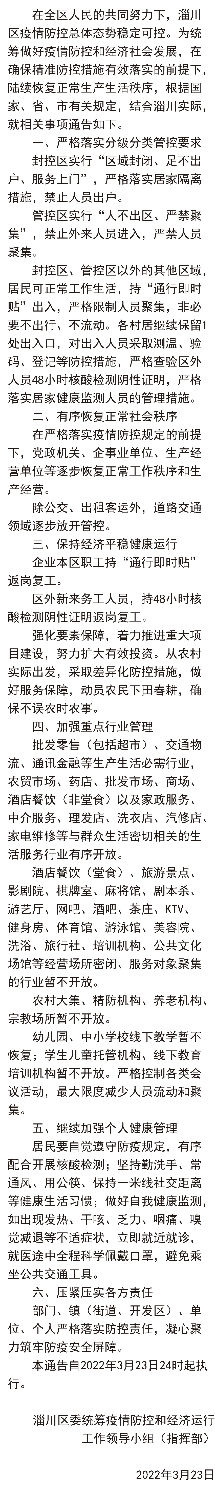 淄川区发布《关于有序恢复正常生产生活秩序的通告》