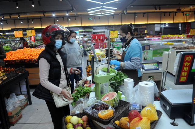 3月7日,市民正在山东省淄博市淄川区好又多超市吉祥路店选购商品。闲置22年的城二社区农贸市场,在般阳路街道的牵线搭桥下,成功引进好又多超市连锁有限公司进行改造,盘活资产1800平方米,不仅方便了周边居民,还安置就业30多人。