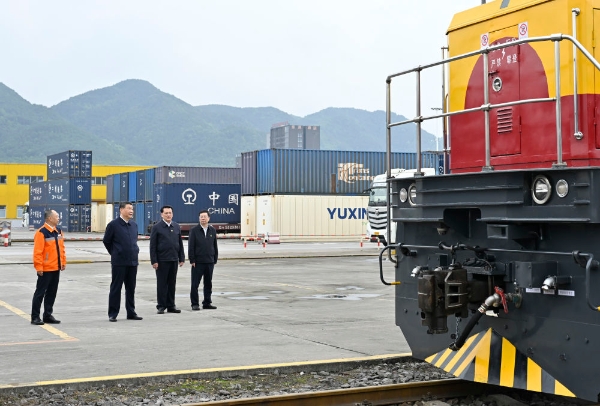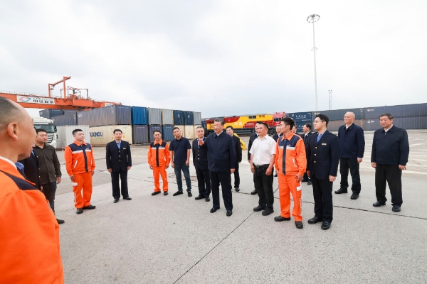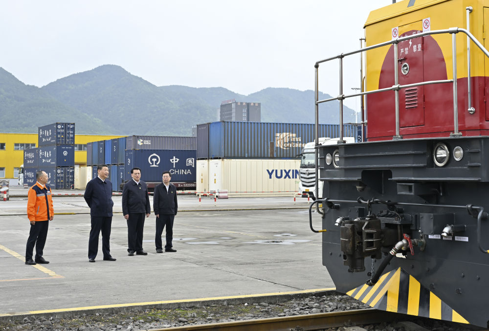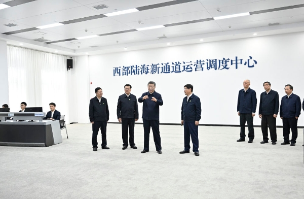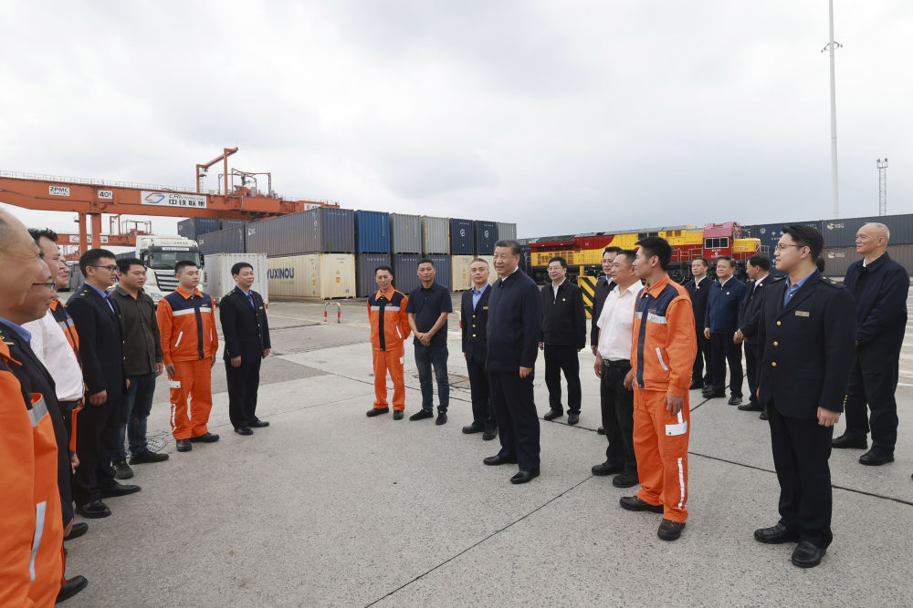 原标题:习近平在重庆考察时强调 进一步全面深化改革开放 不断谱写中国式现代化重庆篇章 蔡奇陪同考察 新华社重庆4月24日电 中共中央总书记、国家主席、中央军委主席习近平近日在重庆考察时强调,重庆要对标新时代新征程党的中心任务和党中央赋予的使命,充分发挥比较优势、后发优势,进一步全面深化改革开放,主动服务和融入新发展格局,着力推动高质量发展,奋力打造新时代西部大开发重要战略支点、内陆开放综合枢纽,在发挥“三个作用”上展现更大作为,不断谱写中国式现代化重庆篇章。 4月22日至24日,习近平在中共中央政治局委员、重庆市委书记袁家军和市长胡衡华陪同下,深入物流园区、城市社区、数字化城市运行和治理中心等进行考察调研。 4月22日至24日,中共中央总书记、国家主席、中央军委主席习近平在重庆考察。这是22日下午,习近平在重庆国际物流枢纽园区西部陆海新通道重庆无水港运营调度中心考察。新华社记者 岳月伟 摄 22日下午,习近平首先考察了重庆国际物流枢纽园区。他来到西部陆海新通道重庆无水港运营调度中心,听取新通道建设情况汇报。习近平强调,物流是实体经济的“筋络”。建设西部陆海新通道,对于推动形成“陆海内外联动、东西双向互济”的对外开放格局具有重要意义。各有关方面要齐心协力,把这一标志性项目建设好、运营好,带动西部和内陆地区高水平对外开放。物流园区要积极运用先进技术,不断创新联运模式,提高科学管理水平,在建设现代物流体系中发挥更大作用。 4月22日至24日,中共中央总书记、国家主席、中央军委主席习近平在重庆考察。这是22日下午,习近平在重庆国际物流枢纽园区重庆铁路集装箱中心站,同货车司机、列车司机、装卸工人、场站管理人员等亲切交流。新华社记者 王晔 摄 4月22日至24日,中共中央总书记、国家主席、中央军委主席习近平在重庆考察。这是22日下午,习近平在重庆国际物流枢纽园区重庆铁路集装箱中心站,同货车司机、列车司机、装卸工人、场站管理人员等亲切交流。新华社记者 王晔 摄 4月22日至24日,中共中央总书记、国家主席、中央军委主席习近平在重庆考察。这是22日下午,习近平在重庆国际物流枢纽园区重庆铁路集装箱中心站,同货车司机、列车司机、装卸工人、场站管理人员等亲切交流。新华社记者 岳月伟 摄