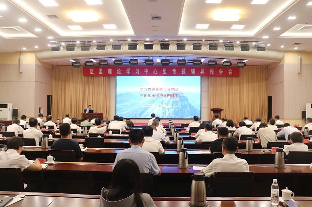 孙波围绕新修订的《中华人民共和国文物保护法》,从立法精神、强化责任、监督检查、贯彻实施4个方面,作了深入浅出的解读阐释,对我区更好地学习和运用法律武器,提升文物保护能力和水平提供了有力指导。