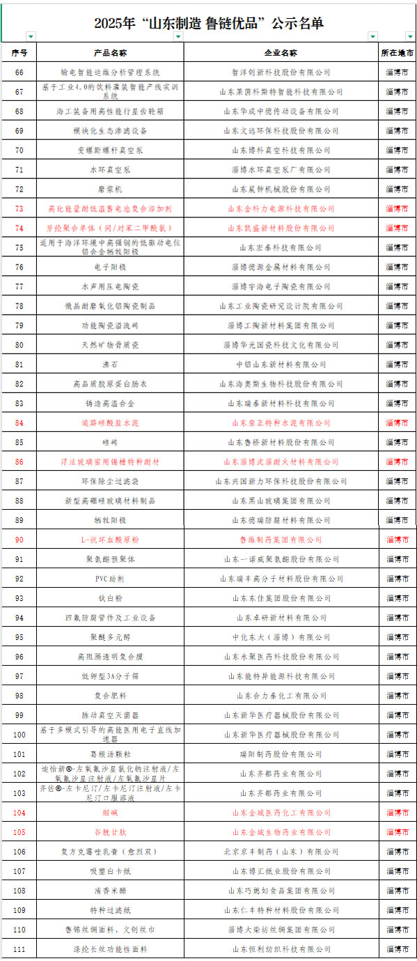 淄川这些产品入选首批“山东制造 鲁链优品”