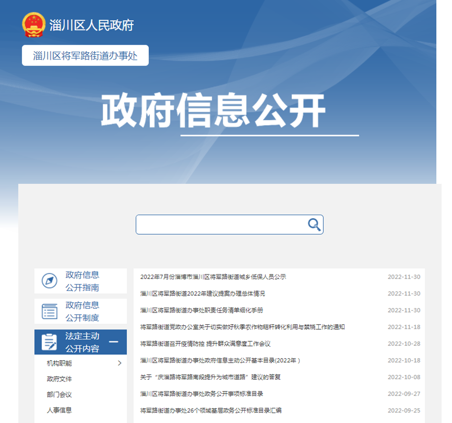 淄川区将军路街道办事处政府信息公开指南