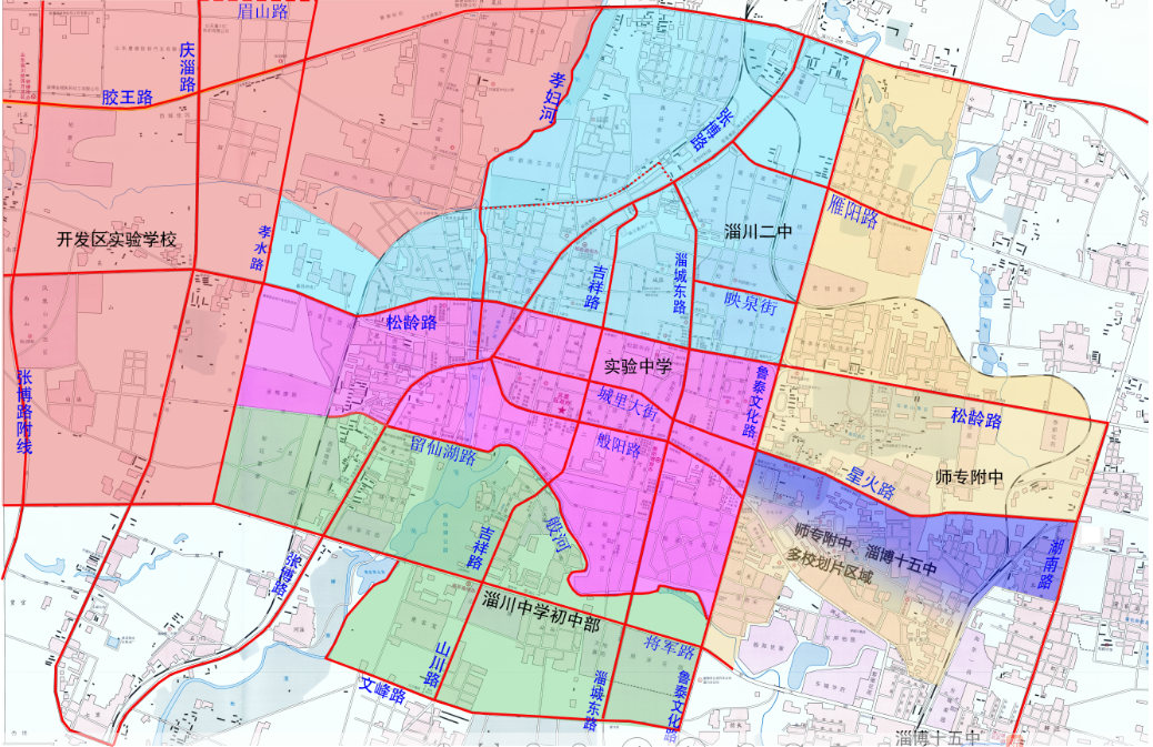 (四)淄川区实验小学南校区:(1)前来村、查王村、公孙村、北石村、樊家窝村居民子女;(2)张博路以东,般阳路以南,吉祥路以西,将军路以北;(3)吉祥路以东,般河以南,鲁泰文化路以西,文峰路以北;(4)孝妇河以东,将军路以南,山川路以西,文峰路以北。