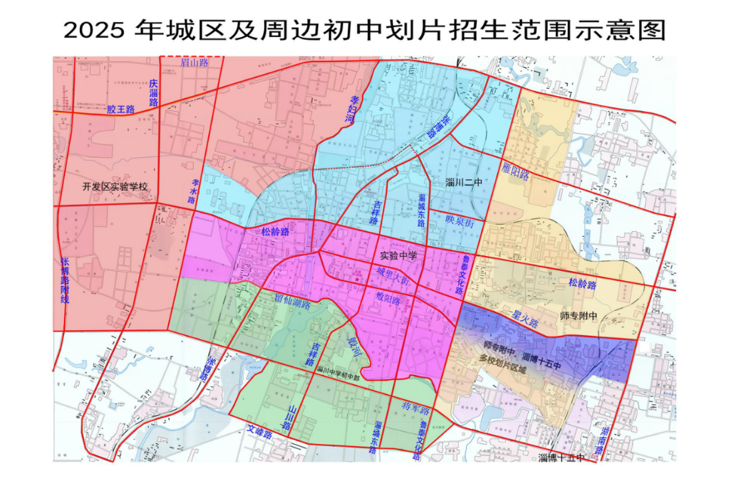 根据《教育部办公厅关于开展义务教育阳光招生专项行动(2025)的通知》和《淄川区2025年义务教育段学校招生工作实施方案》(川教体办字〔2025〕11号)等文件精神,本着划片范围“保持稳定、适当微调”的原则,淄川区城区义务教育段学校划片范围基本保持2025年确定范围,现公告如下: