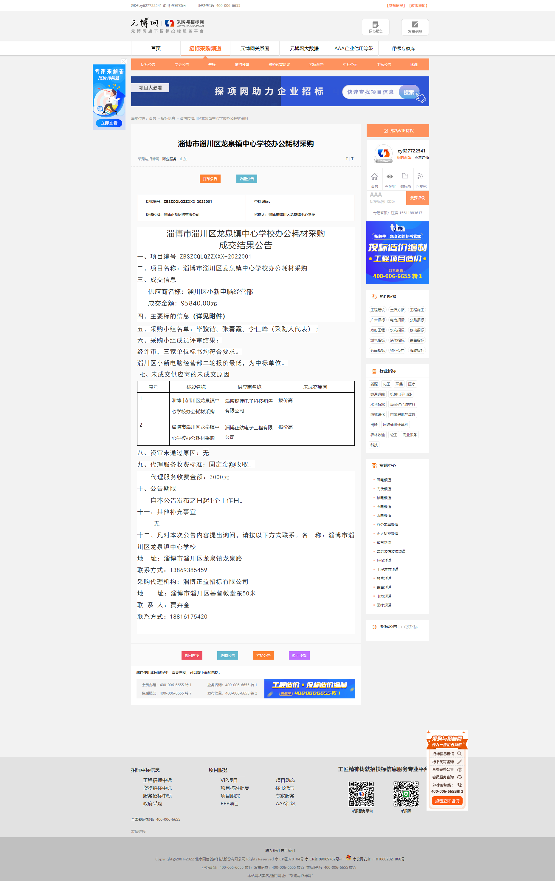 淄博市淄川区龙泉镇中心学校食堂和办公耗材采购公示