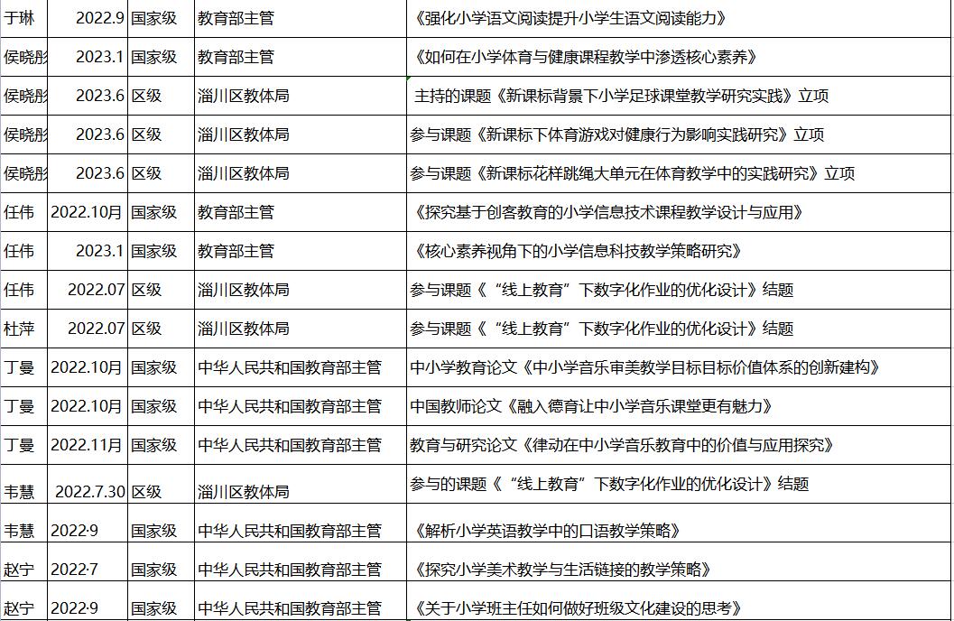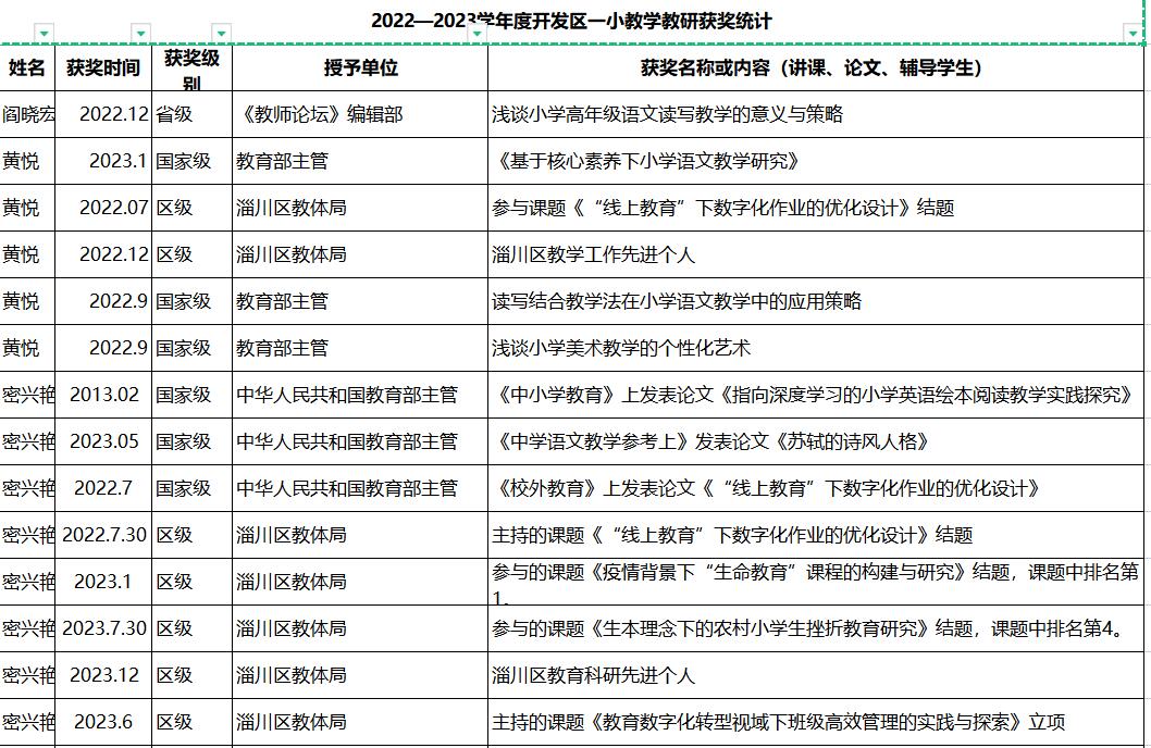 2022—2023学年度淄川经济开发区第一小学教学教研获奖统计