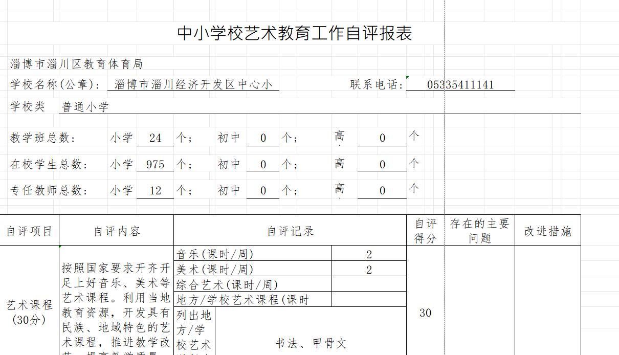 淄川经济开发区中心小学2024学年度艺术教育工作自评报表