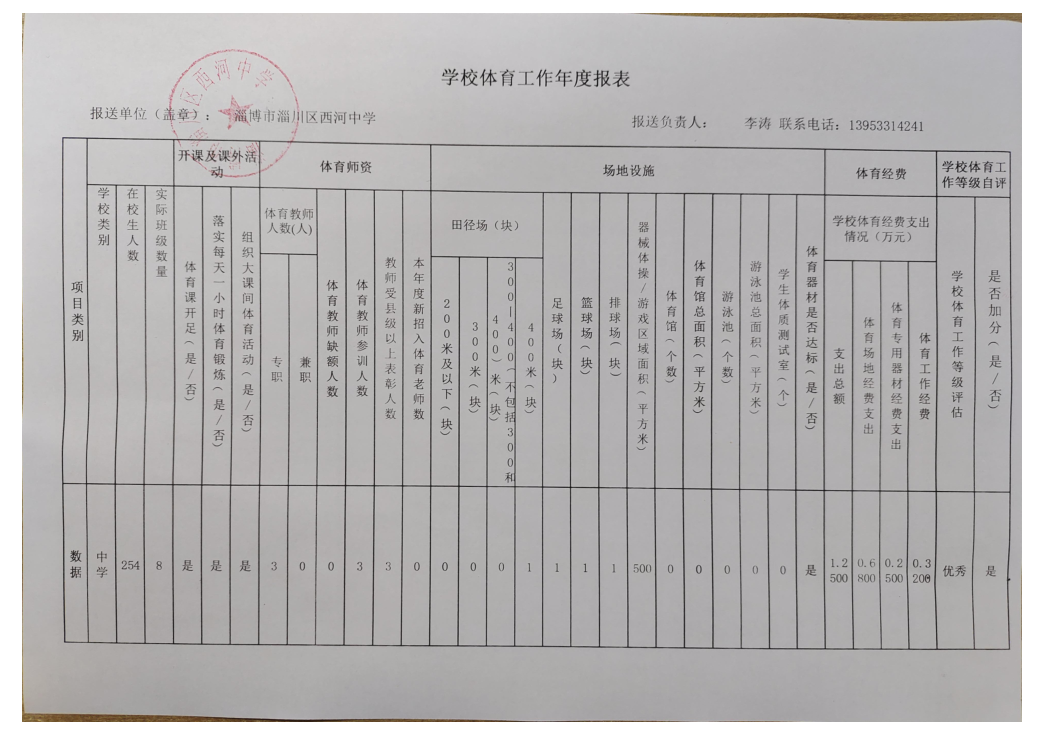 西河中学2024学校体育工作年度报表