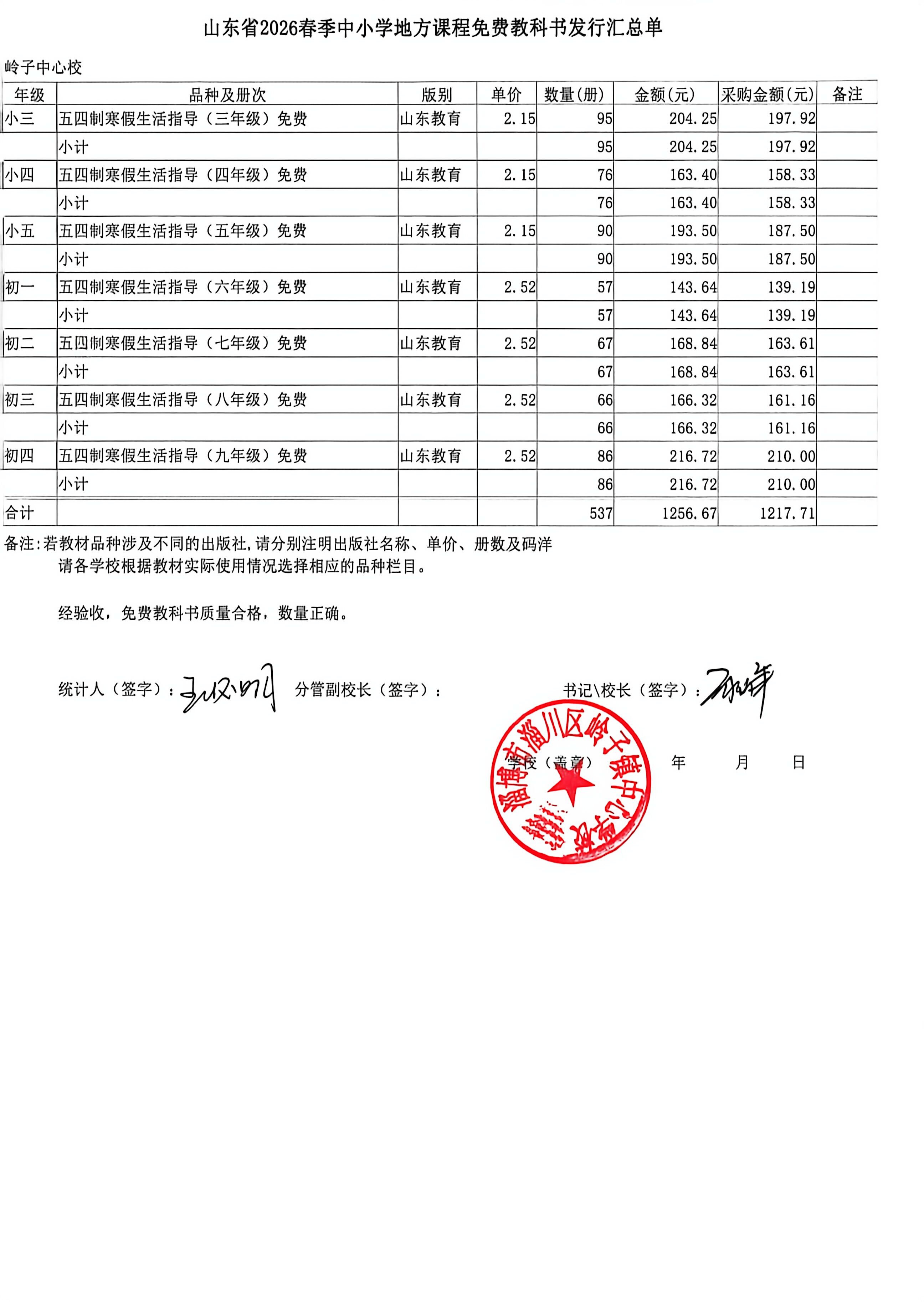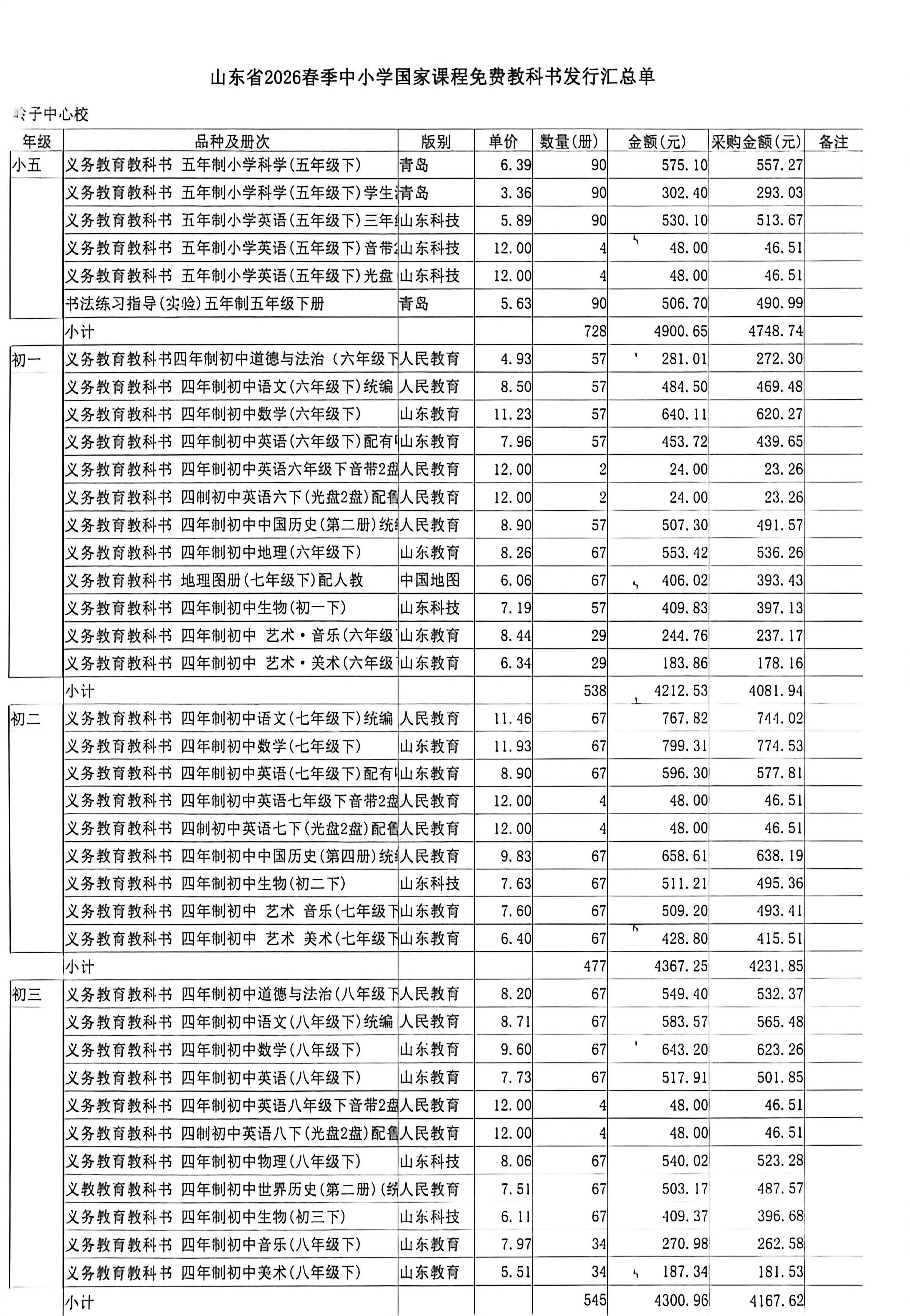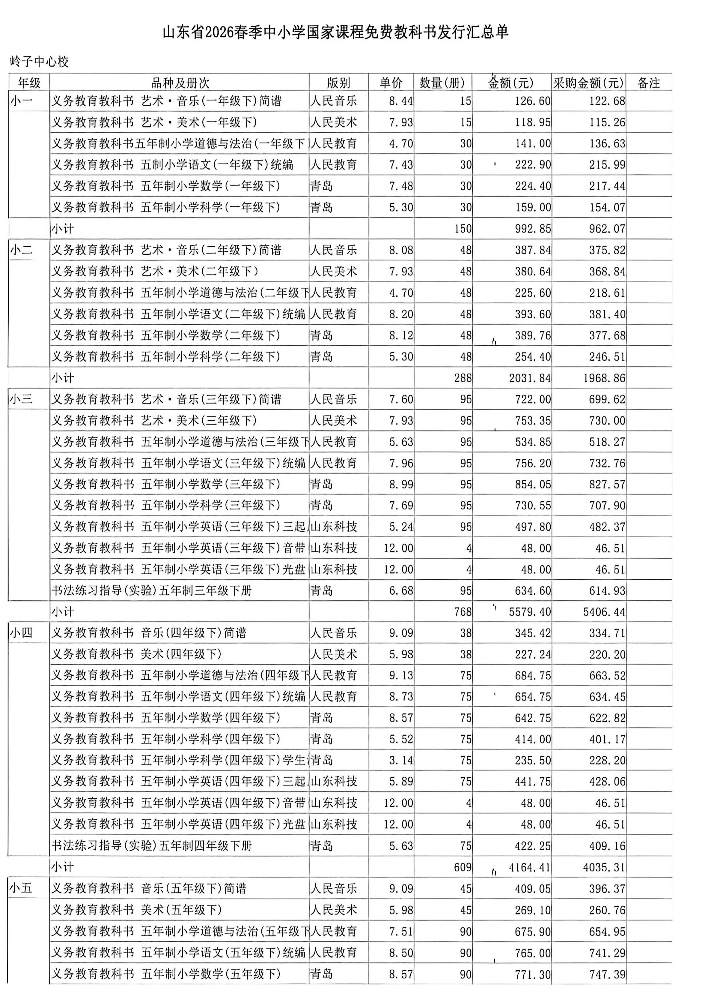 2026年春季岭子镇中心学校中小学教材使用目录(见附件信息)