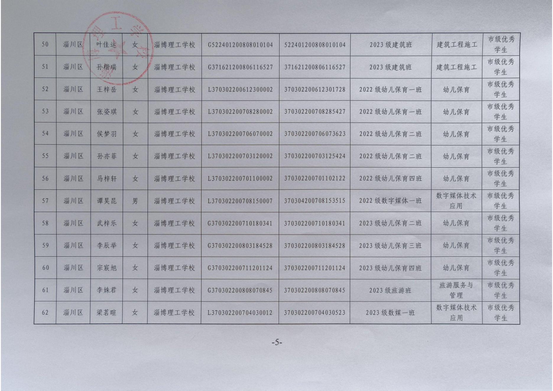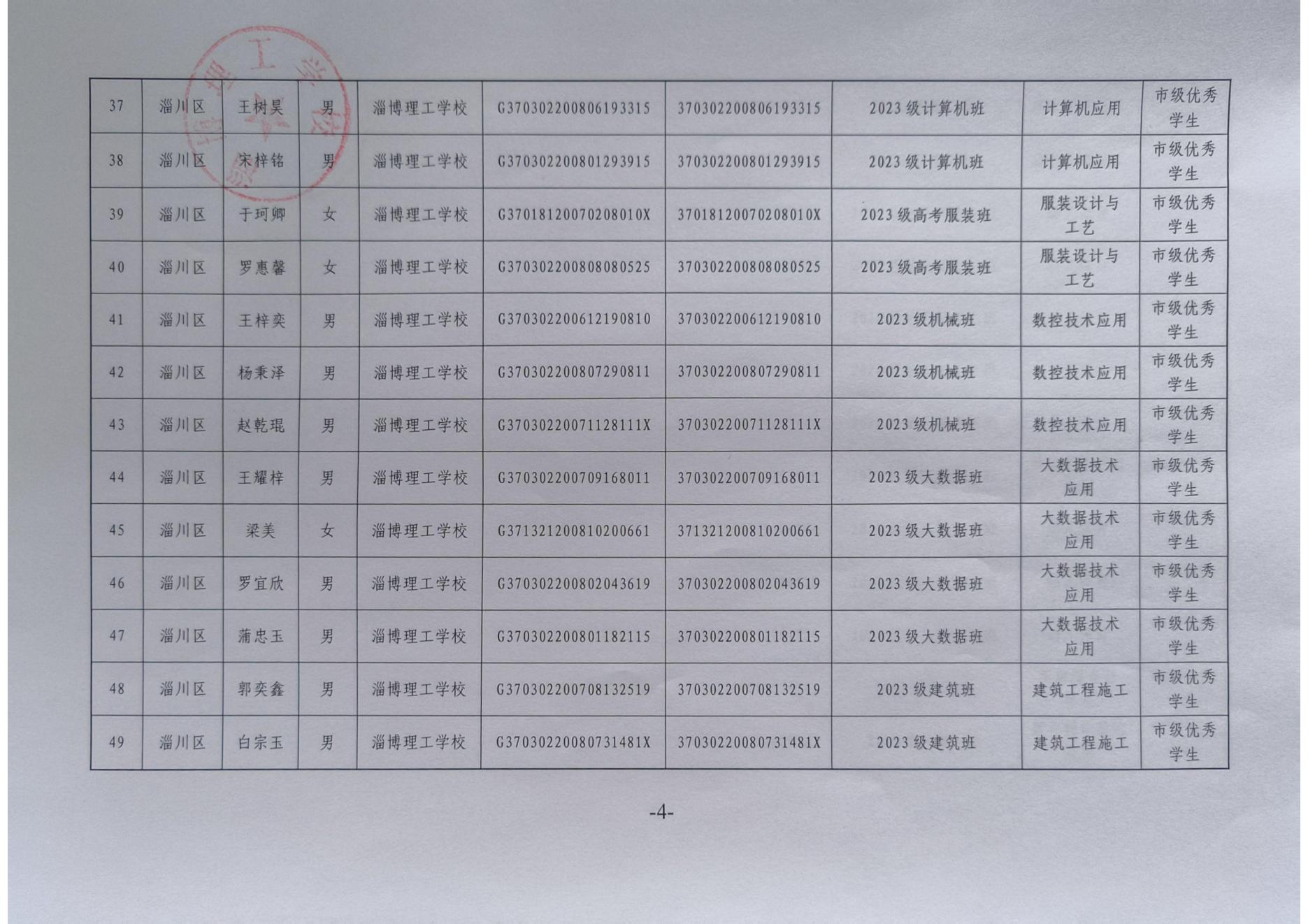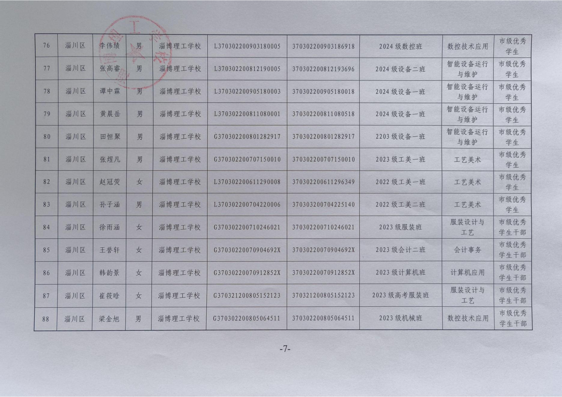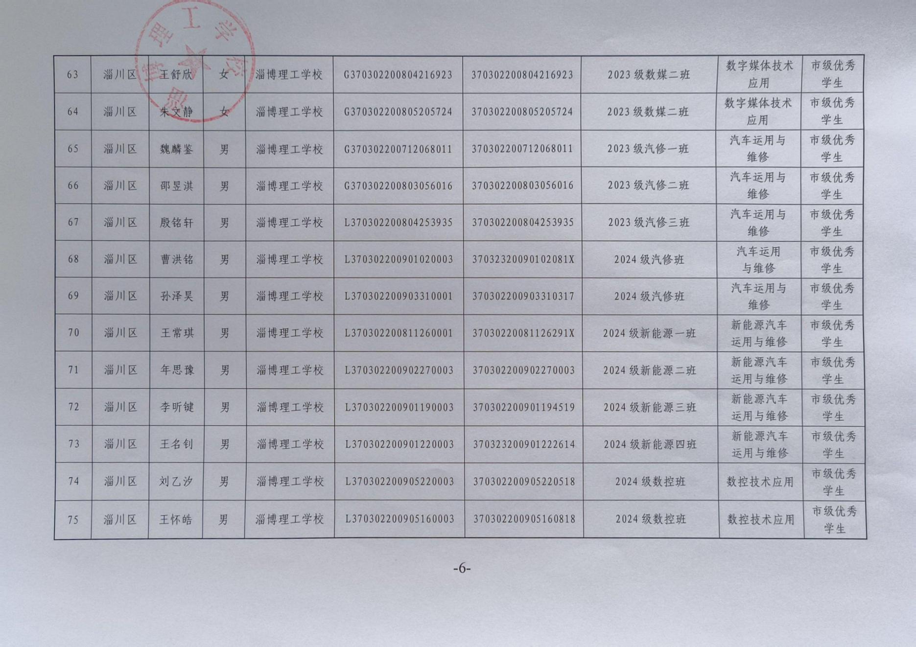 淄博理工学校拟推荐省市级普通中学及中等职业学校优秀学生、优秀学生干部、优秀班集体公示