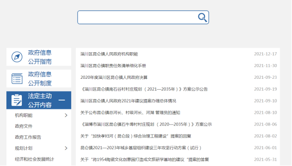 淄川区昆仑镇人民政府在职责范围内负责主动或依申请公开下列各类政府信息:
