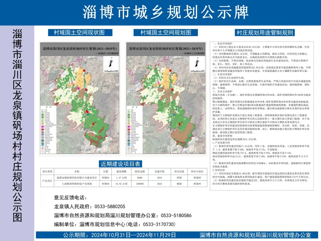 《淄博市淄川区龙泉镇矾场村村庄规划(2021—2035年)》方案公示公告