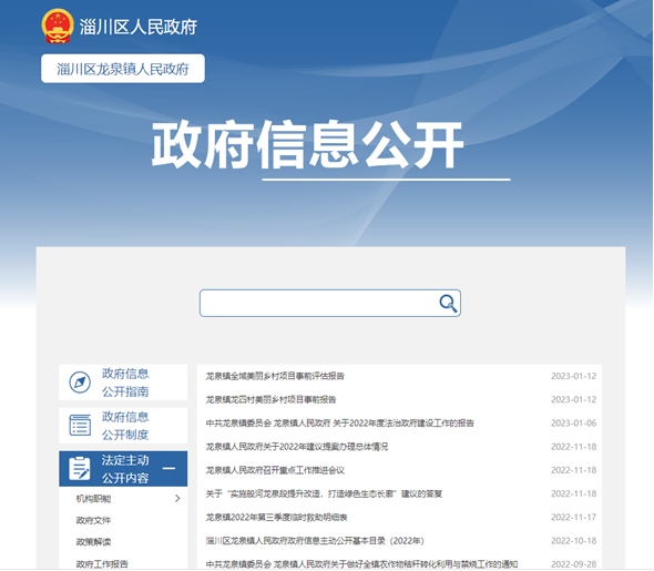 淄博市淄川区龙泉镇人民政府2022年政府信息公开工作年度报告