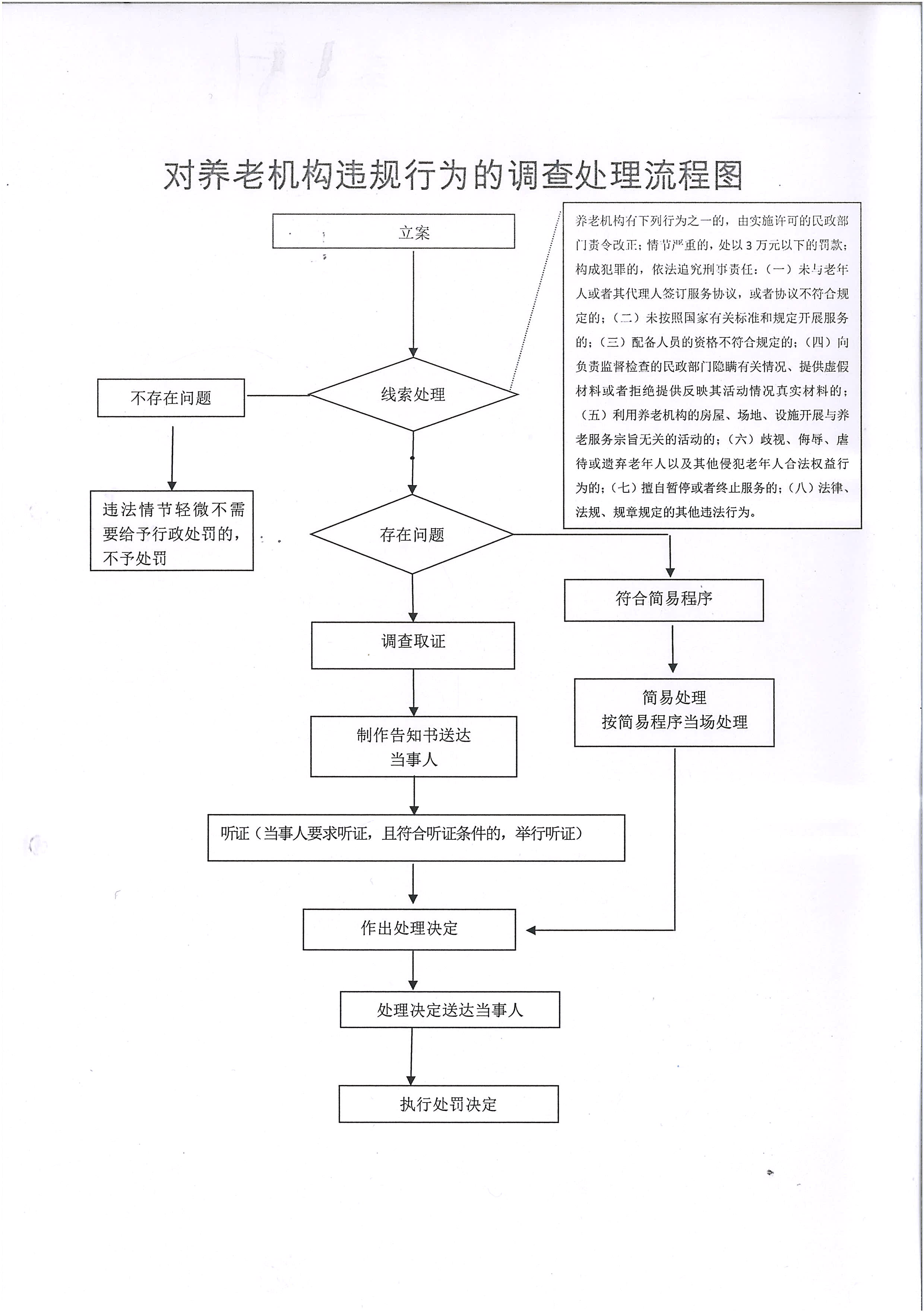 区民政局对养老机构违规行为的调查处理流程图予以公示,如有问题请咨询民政局相关科室,联系电话: