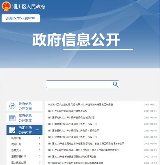 淄川区农业农村局政府信息公开指南