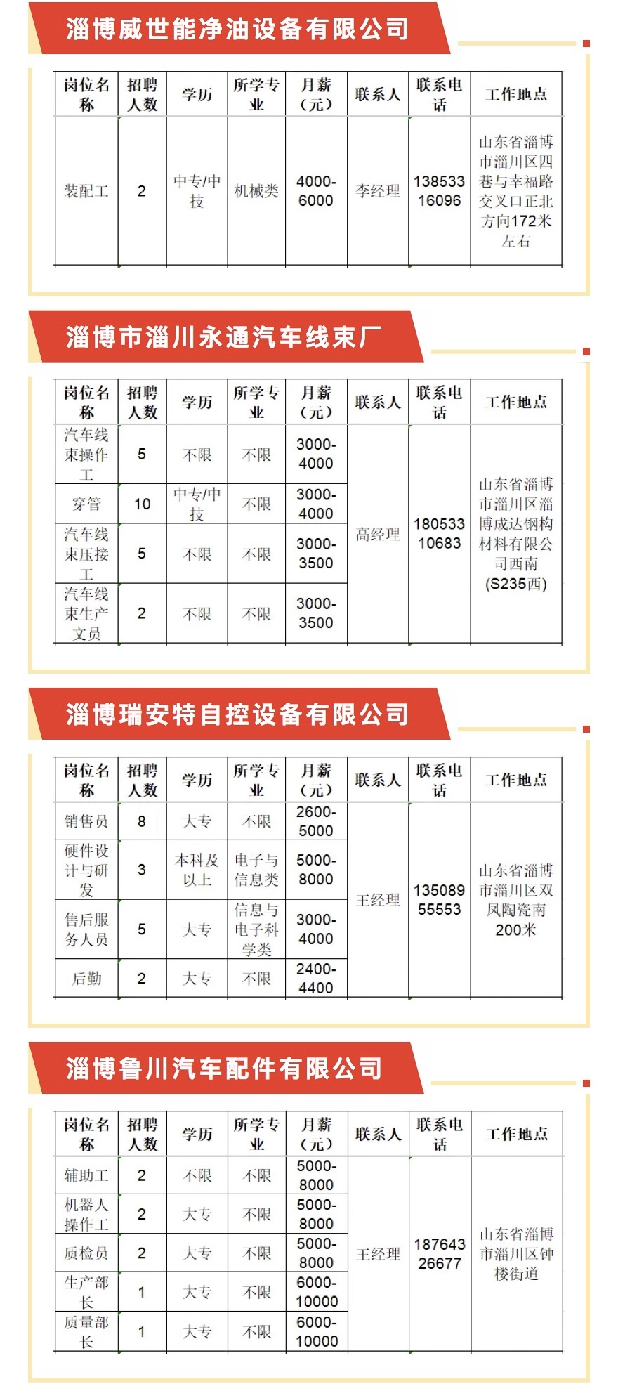 淄川区2026年3月贫困劳动力“百日千万网络招聘专项行动”