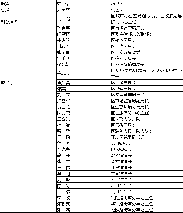 2.2.3 区指挥部成员单位工作职责