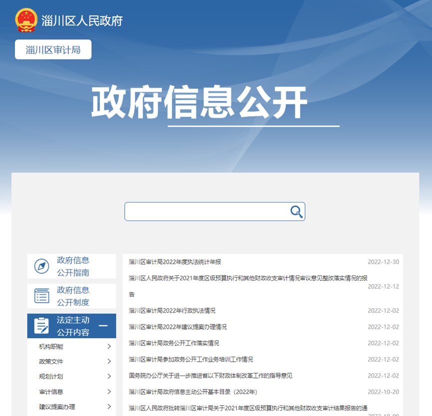 淄川区审计局在职责范围内负责主动或依申请公开下列各类政府信息: