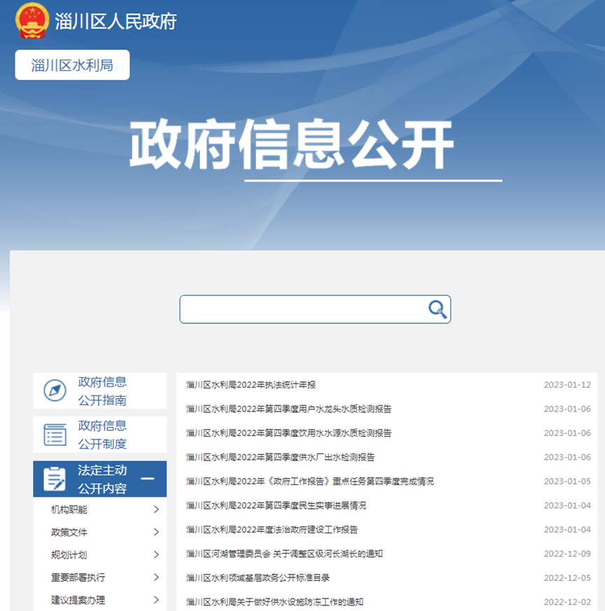 淄川区水利局在职责范围内负责主动或依申请公开下列各类政府信息: