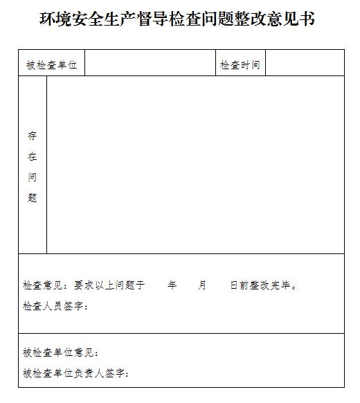(二)严肃工作作风,确保排查整治务实高效。要充分发扬“严真细实快”工作作风,采取“四不两直”方式深入企业、深入现场,全面排查治理各类生态环境风险隐患,督促企业落实各项风险防控措施,对重大风险防范措施缺失等突出问题抓住不放、一盯到底,保证大检查工作整治高效务实。各分管领导、督导检查组、各责任科室在督导检查中,对发现的问题提出整改意见,统一填写《环境安全生产督导检查问题整改意见书》(附件1),从5月份开始,每月12日和27日前报局督查办,汇总后报区安委会办公室。