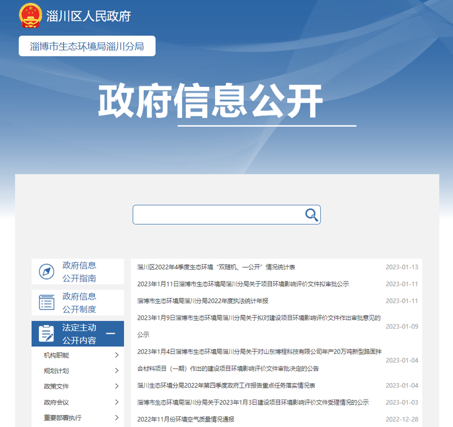 淄博市生态环境局淄川分局在职责范围内负责主动或依申请公开下列各类政府信息: