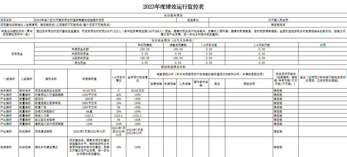 2023年淄川区太河镇东同古村道路等基础设施提升项目绩效运行监控表