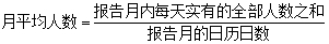 1.月平均人数是以报告月内每天实有的全部人数之和,除以报告月的日历日数。计算公式为:
