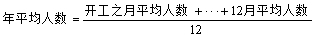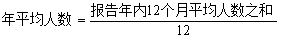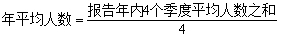 3.年平均人数是以12个月的平均人数之和除以12求得,或以4个季度的平均人数之和除以4求得。计算公式为: