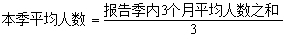 本季平均人数以报告季内三个月的平均人数之和除以3求得。计算公式为: