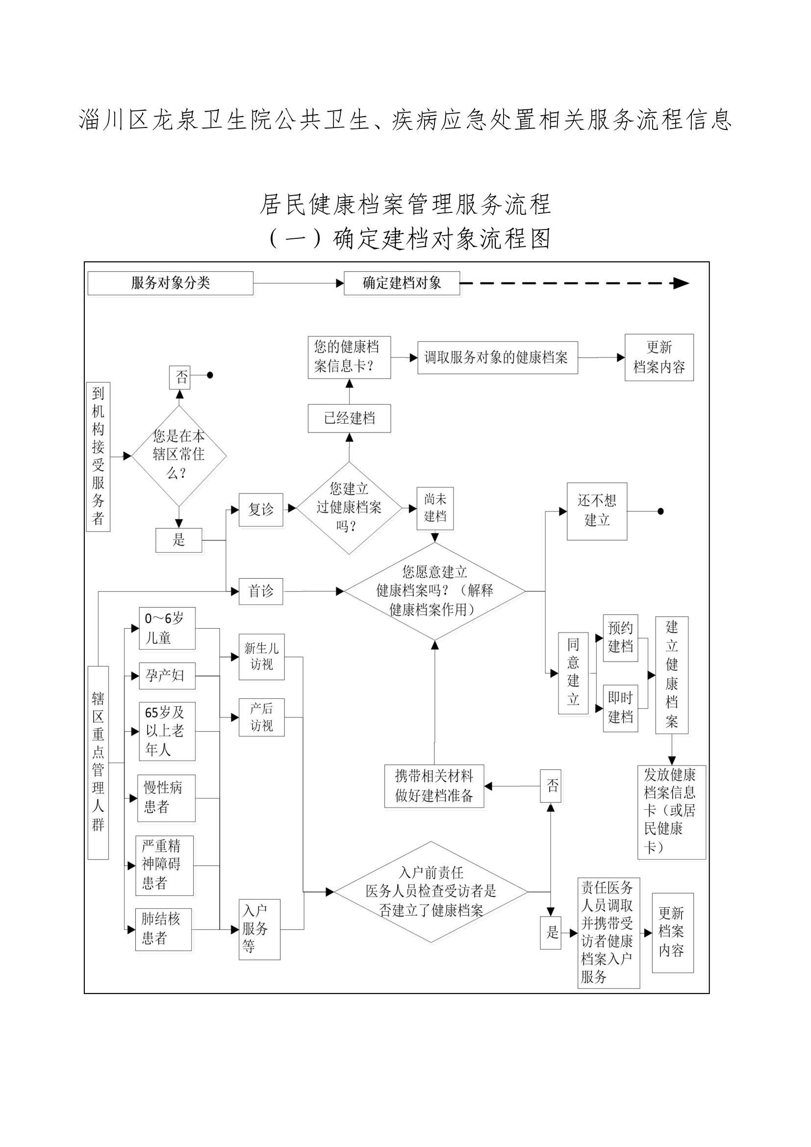 淄川区龙泉卫生院公共卫生、疾病应急处置相关服务流程信息