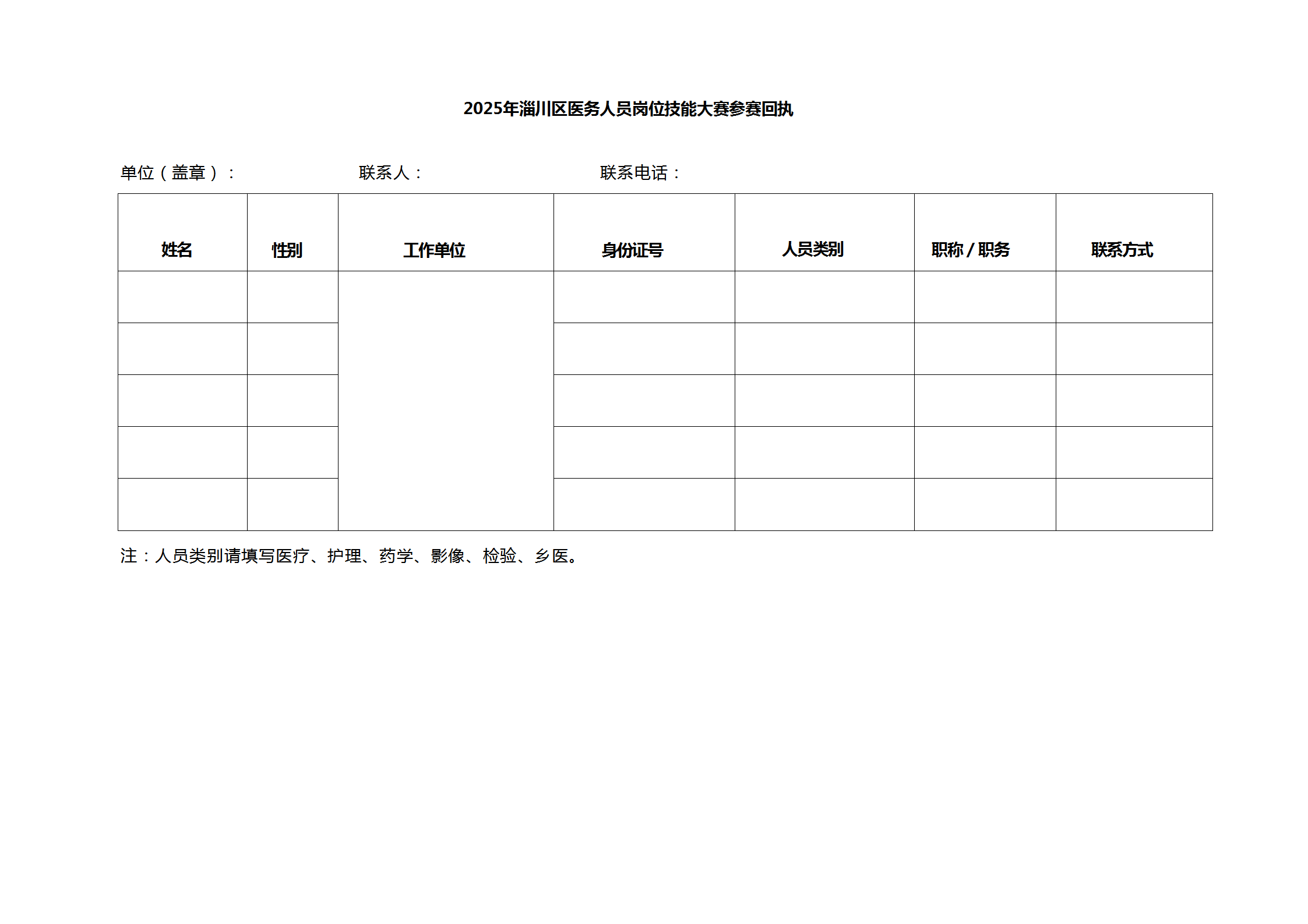 附件:2025年淄川区医务人员岗位技能大赛参赛回执