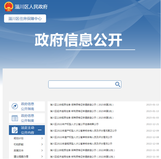 淄川区住房保障中心政府信息公开指南