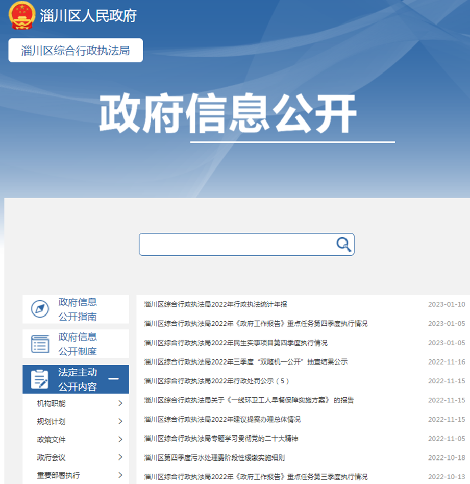 主要包括:《条例》第二十条规定淄川区综合行政执法局职责范围内依法应当公开的其他信息。