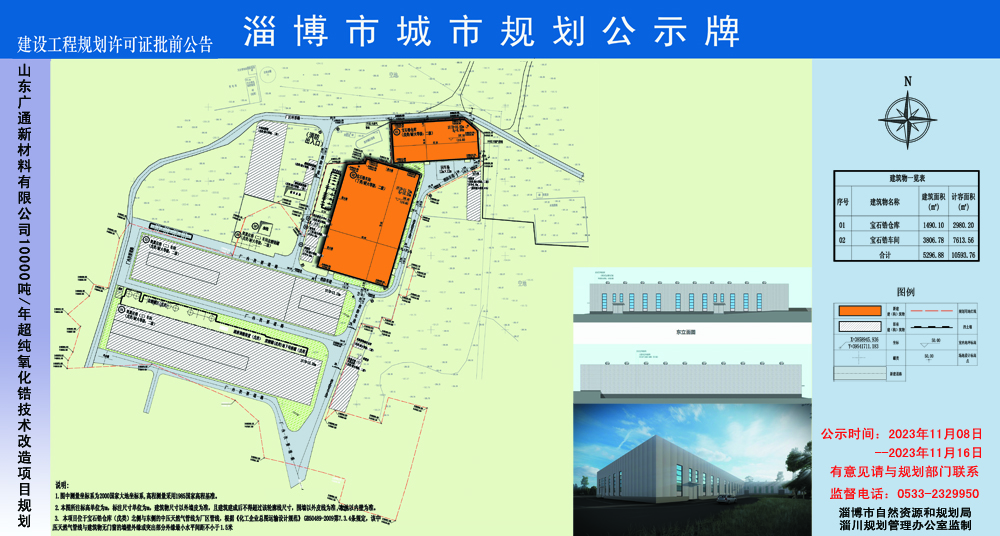 山东广通新材料有限公司10000吨/年超纯氧化锆技术改造项目建设工程规划许可证批前公告